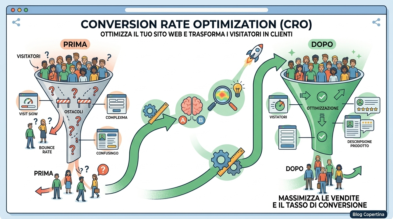 Hai investito tempo e soldi per portare traffico sul tuo sito. Le visite arrivano. Ma le vendite, i contatti, le richieste di preventivo — latitano. Nella maggior parte dei casi, il problema non è il traffico: è che manca una strategia di conversion rate optimization.